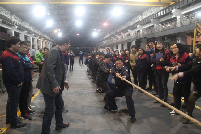 3月16日18:30,一百多名鑫港同仁齊聚機加工車(chē)間現場(chǎng)觀(guān)看團體拔河與動(dòng)物比猜,為參賽隊員加油、助威!